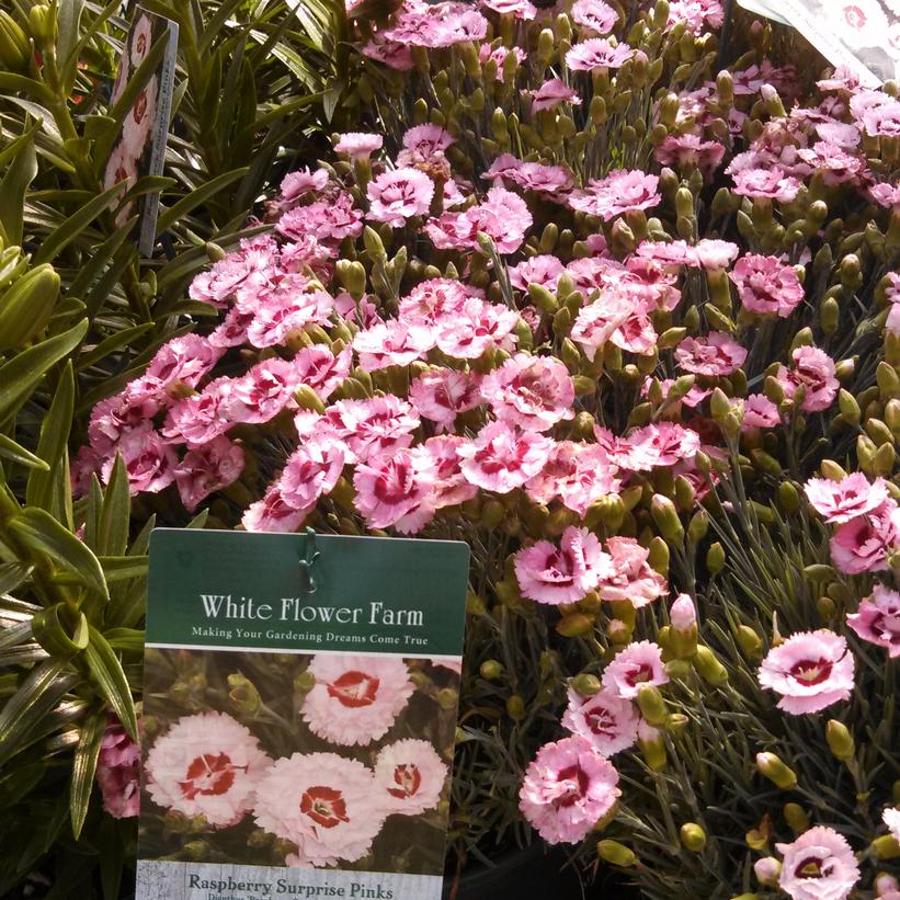 This beloved spring blooming classic has been pushed to the next level by this outstanding selection that features more blooming power and larger bloom than almost any other Garden Pink. Needle-like, gray-green foliage forms a tight rounded mound that is attractive in itself throughout the growing season but who’s looking at the foliage when this baby starts to bloom in late May, continuing to July, covering itself with 2″ diameter, semi-double deep pink flowers with deep raspberry red centers. The incredible allure of this bloom is enhanced further by the sheer volume of the flowers with single flower stems bursting with upwards of 5 or more blooms each! And Flower scent…there may be none better in the Dianthus world!! What a great garden addition for sunny well-drained soils! Plant it in groups to enhance its power even more!
